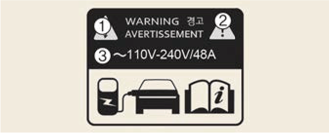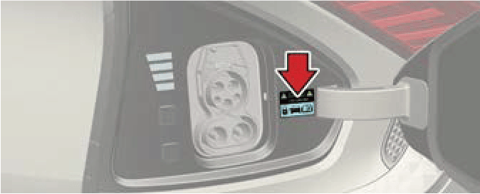 L'étiquette de charge électrique est apposée sur la porte de charge.