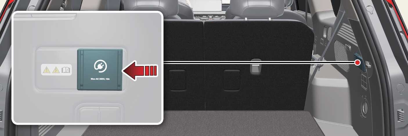 قم بالتوصيل مع منفذ طاقة V2L الموجود في حجرة الأمتعة عندما يكون زر السيارة الكهربائية (EV) في وضع التشغيل.