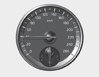 시동 「ON」 또는 시동 상태에서 연료탱크에 남아 있는 연료의 잔량을 나타냅니다.