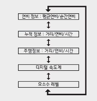 LCD 표시창에서 트립 컴퓨터 모드 진입 후, 조작버튼으로 트립 모드를 변경할 수 있습니다.