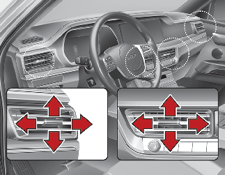 송풍구로 나오는 바람을 상·하·좌·우 원하는 방향으로 조절하십시오.