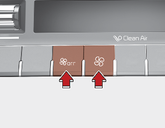 스위치의 오른쪽 부분을 누르면 풍량이 많아지고, 왼쪽 부분을 누르면 풍량이 적어집니다. 표시창에 풍량의 정도가 표시됩니다.