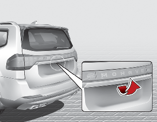 테일게이트가 닫힌 상태에서 파워 테일게이트 작동 버튼을 길게 누르면 비상 경고등 및 경고음이 작동하며 테일게이트가 열립니다. 파워 테일게이트 작동 중 버튼을 짧게 누르면 작동이 멈춥니다.