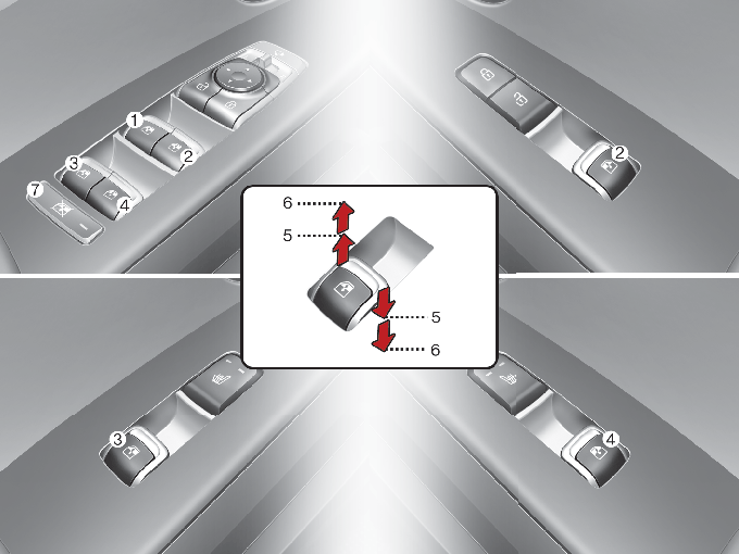 뒷좌석(우측) 유리창 열림/닫힘 스위치