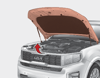 엔진 후드를 중간 정도 들어 올리면 저절로 완전히 열리게 됩니다.