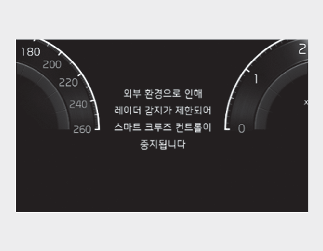 인식 센서 경고문이 표시되지 않거나 경고등이 켜지지 않더라도 스마트 크루즈 컨트롤이 정상적으로 작동하지 않을 수 있습니다.