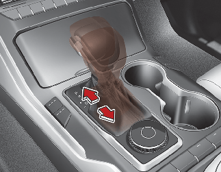 브레이크 페달을 밟고 변속레버 앞쪽에 위치한 「SHIFT LOCK RELEASE」 버튼을 누른 상태에서 변속 레버를 「N」(중립) 위치로 이동하십시오.