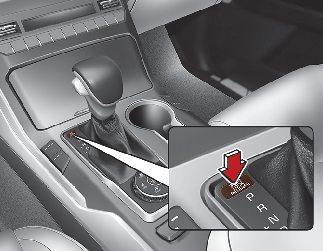 배터리가 방전되었거나 또는 시동 「ON」 상태가 아니면 브레이크 페달을 밟아도 변속레버가 「P」(주차) 위치에서 「R」(후진) 위치로 조작되지 않습니다. 이 때는 변속레버 앞쪽에 위치한 「SHIFT LOCK RELEASE」 버튼을 누르면서 변속레버를 움직이면 다른 위치로 조작이 가능합니다.