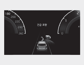 경고문과 경고음을 통해 긴급 조향을 알립니다. 조향 제어가 작동하여 측방 차량과의 충돌을 피할 수 있도록 도와줍니다.