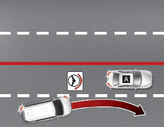 차로변경 시 맞은편에서 접근하는 차량과의 충돌 위험이 판단되면 충돌하지 않도록 조향을 도와줍니다.
