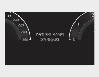 후측방 충돌방지 보조가 꺼진 상태에서 시동을 껐다가 걸면 계기판에 경고문이 표시됩니다.