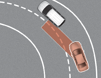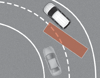 커브 길에서는 옆 차로에 있는 차량을 인식하지 못해 후측방 충돌방지 보조가 정상적으로 작동하지 않을 수 있습니다.