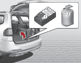 사용 후 타이어 임시 수리 장치를 차내 제자리에 두십시오.