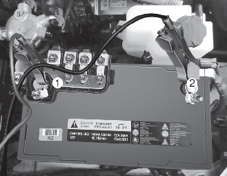 케이블 분리시 반드시 배터리의 「-」 단자 (검정색 케이블) 부터 분리하십시오.