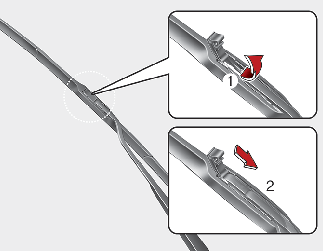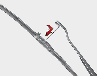 주의와이퍼 블레이드를 분리할 때 와이퍼 암을 뒤쪽으로 과도하게 힘을 주어 당기면 연결 부위가 파손될 우려가 있으므로 주의하십시오.