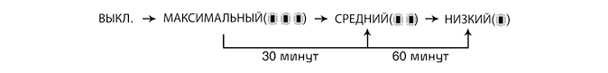При каждом нажатии переключателя настройка температуры сиденья изменяется следующим образом: