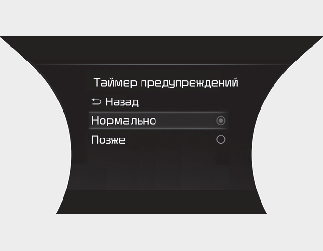 При первоначальной поставке автомобиля для параметра времени выдачи предупреждений задано значение «Normal» (Нормальное). При изменении таймера предупреждений время выдачи предупреждения других функций помощи водителю может измениться.