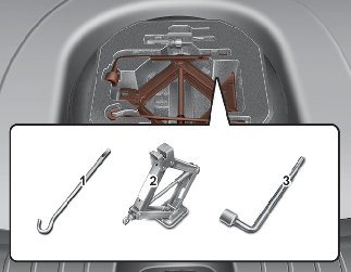 Домкрат, рукоятка домкрата и колесный гаечный ключ хранятся в багажном отсеке.