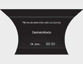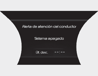 El mensaje "Considere tomar un descanso" aparecerá en el tablero y un sonido de advertencia indicará al conductor que debe descansar si el nivel de atención del conductor es inferior a 1.