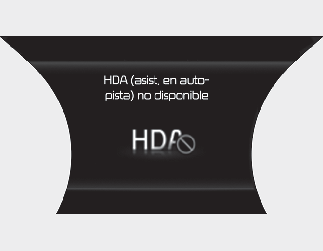 Si el conductor aun no tiene las manos en el volante después del aviso de sin manos, el mensaje de aviso de "Asistencia de conducción en autopista (HDA) cancelada" aparecerá y el sistema de asistencia de conducción en autopista se cancelará automáticamente.