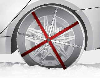 Monte AutoSock (cadenas de nieve de tela) en las ruedas traseras en vehículos 2WD o en vehículos AWD. Tenga en cuenta que montar AutoSock (cadenas de nieve de tela) en las ruedas proporciona una mayor fuerza de conducción, pero no impide que el vehículo resbale lateralmente.