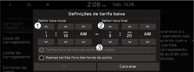 Selecione “EV → Charge management (Gestão de carregamento) → Reserved charging and Climate Control (Carregamento condicionado e controlo da climatização) → Reserved charging (Carregamento condicionado)” → Definições de horário económico no ecrã.
