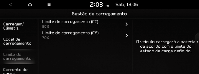 Se o nível de carga alvo da bateria for inferior ao nível de carga da bateria de alta tensão, a bateria não é carregada.