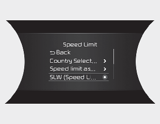Seleção de país: Se o veículo não estiver equipado com um sistema de navegação, será fornecido um menu de definições para selecionar o país manualmente. Para a Assistência do limite de velocidade inteligente funcionar corretamente, selecione o país onde o veículo se encontra a ser conduzido atualmente.