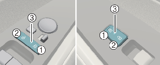 When all vehicle doors are locked, the door indicator light (3) on the driver's door and passenger's door will turn on. If any door is unlocked, it would go off.