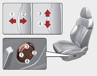 To recline the front passenger seat forward, press the switch (3). To recline the front passenger seat backward, press the switch (4).