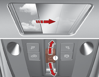 To open the sunshade, pull the sunroof control lever (1) backward to the first detent position.