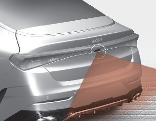 The outside rearview camera does not cover the complete area behind the vehicle. The driver should always check the rear area directly through the inside and outside rearview mirror before parking or backing up.