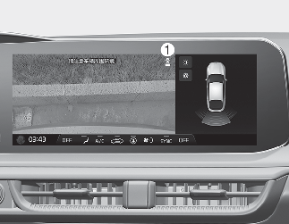 When you touch the icon (1), the top view is displayed on the screen and shows the distance from the vehicle in the back of your vehicle while parking.