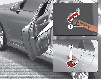 The child safety lock is located on the edge of each rear door. When the child safety lock is in the lock position (1), the rear door will not open if the inner door handle is pulled.
