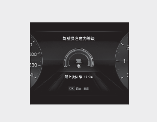 The 'Consider taking a break' message will appear on the cluster and an audible warning will sound to suggest that the driver take a break, when the driver's attention level is below 1.