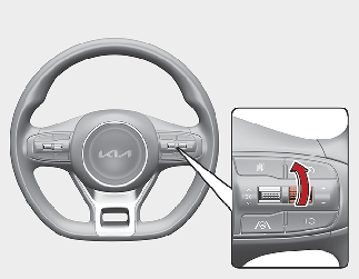 Push the + switch up and hold it while monitoring the set speed on the cluster. The cruising speed will increase to the nearest multiple of ten at first, and then increase by 10 km/h each time the switch is operated in this manner.