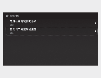 With the ENGINE START/STOP button in the ON position, select 'Driver Assistance → Driving Assist → Highway Auto Speed Change' from the Settings menu to turn on Navigation-based Smart Cruise Control and deselect to turn off the function.