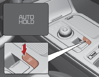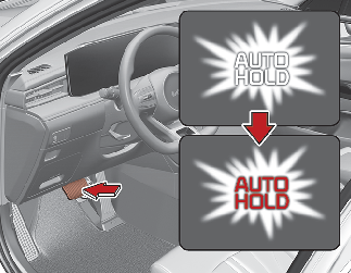 When coming to a complete stop by pressing the brake pedal, the AUTO HOLD indicator changes from white to green indicating the AUTO HOLD is engaged. The vehicle will remain at a standstill even if you release the brake pedal.