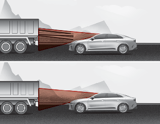 If the vehicle in front of you has cargo that extends rearward from the cab, or when the vehicle in front of you has higher ground clearance, additional special attention is required. Forward Collision-Avoidance Assist may not be able to detect the cargo extending from the vehicle. In these instances, you must maintain a safe braking distance from the rearmost object, and if necessary, steer your vehicle and depress the brake pedal to reduce your driving speed in order to maintain distance.