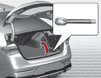 Open the trunk and remove the towing hook from the tool case.
