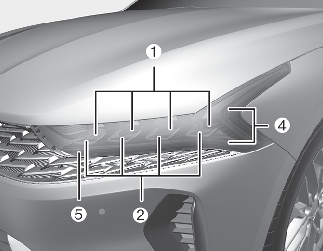 Removing/installing the headlamp assembly can result in damage to the vehicle. If non-genuine parts or substandard bulbs are used, it may lead to blowing a fuse or other wiring damages.