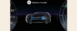 O sistema híbrido informa os condutores do fluxo de energia em vários modos de utilização. Durante a condução, o fluxo de energia atual é especificado em 11 modos.