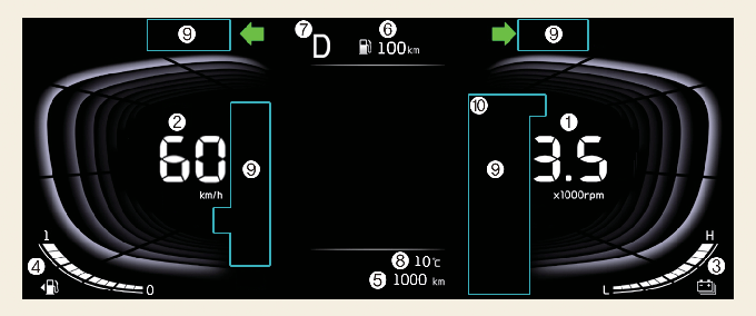ECO: mostra que o veículo está a ser conduzido de maneira amiga do ambiente.