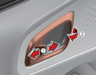 La serrure de sécurité enfants est située sur le bord de chaque portière arrière. Lorsque la serrure de sécurité enfants est en position de verrouillage (1), la porte arrière ne s’ouvre pas si la poignée intérieure (2) est tirée.