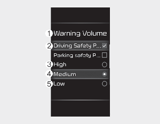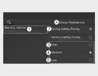 Si vous modifiez le volume de l’avertissement, celui des autres systèmes d’assistance au conducteur peuvent également changer.