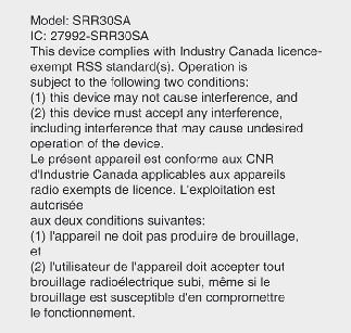 Les composantes de radiofréquence (radar de coin arrière) sont conformes aux normes suivantes :