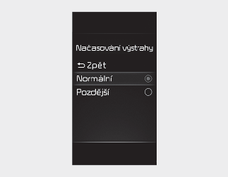 Nastavení načasování výstrahy „Late“ (Později) používejte při mírném provozu a pomalejší jízdě.