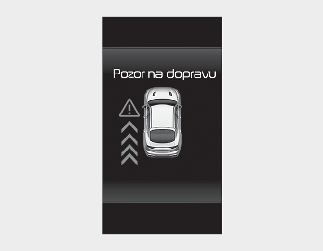 Když je vozidlo blížící se zezadu zjištěno ve chvíli, kdy jsou dveře otevřené, zobrazí se na přístrojovém panelu varovná zpráva „Watch for traffic“ (Dejte pozor na provoz) a zazní varovný signál.