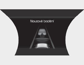 Je-li nutné upozornit řidiče, že dojde k asistovanému nouzovému brzdění, na přístrojovém panelu se zobrazí výstražná zpráva „Emergency braking“ (Nouzové brzdění) a zazní výstražný zvukový signál.