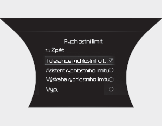 Pokud zvolíte 'Off' (Vypnuto), inteligentní asistent pro rychlostní omezení se vypne.